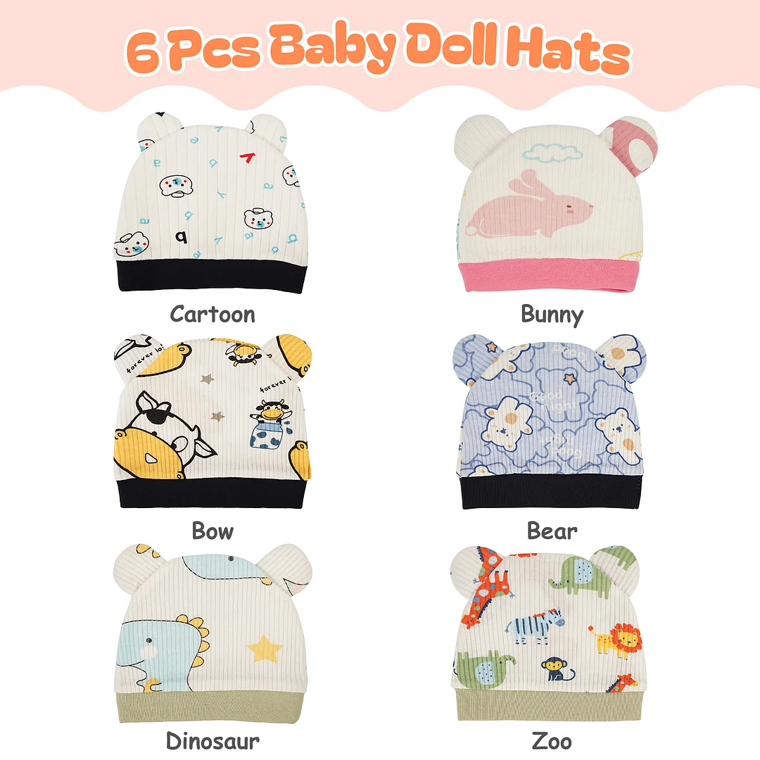 17"-22" Animal Cartoon Hat Accessories 6-Pieces Set for Reborn Baby